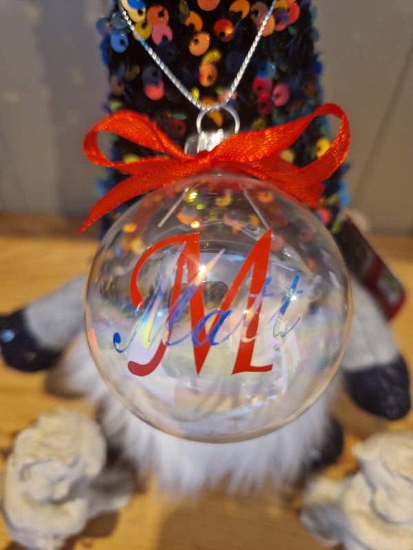 6cm or 8cm glass baubles - all made to order with various choice in writing colours finished with a bow to match.